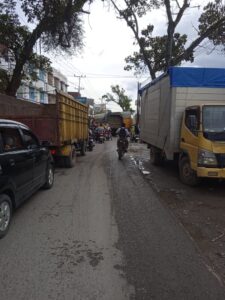 Mengingat ruas badan jalan yang sekarang ini sangat sempit, terlebih apabila ada truk yang membongkar muatan ketoko sudah jelas kenderaan yang melintas disana terpaksa antrian panjang seperti yang terlihat pada gambar diatas ini