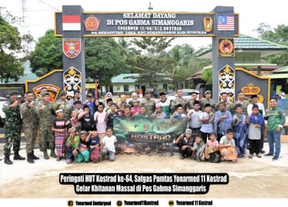 Dalam rangka memperingati Hari Ulang Tahun Kostrad ke-64, Satgas Pamtas Yonarmed 11 Kostrad menggelar kegiatan khitanan massal gratis di Pos Gabma Simanggaris, Kabupaten Nunukan, Kalimantan Utara.