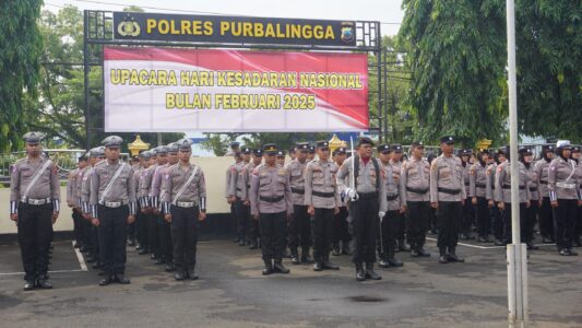 Kapolres Purbalingga AKBP Achmad Akbar memimpin upacara Hari Kesadaran Nasional di halaman Mapolres Purbalingga, Senin (17/2/2025) pagi. Upacara diikuti oleh pejabat utama, kapolsek, para Perwira dan Bintara serta ASN.