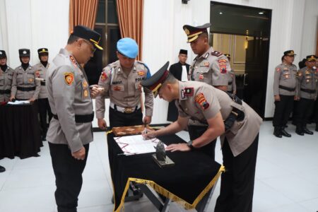 Polres Kebumen menggelar rotasi jabatan perwira dalam upacara serah terima jabatan (Sertijab) yang berlangsung khidmat di Gedung Tribrata Mapolres Kebumen, Kamis 13 Februari 2025.