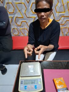 Dalam penggeledahan di lokasi kejadian, polisi menemukan sejumlah barang bukti, di antaranya 1 bungkus plastik bening berisi sabu-sabu dengan berat kotor 1,68 gram, 1 buah sedotan kecil yang sudah diruncingkan, 1 buah plastik bening ukuran sedang, 3 buah plastik bening ukuran kecil, 1 buah mancis warna biru, 1 buah gunting dengan gagang hitam biru, 1 unit HP merek Vivo Y15S warna biru dan Uang tunai sebesar Rp 300.000,- (terdiri dari 2 lembar pecahan Rp 100.000 dan 2 lembar pecahan Rp 50.000).