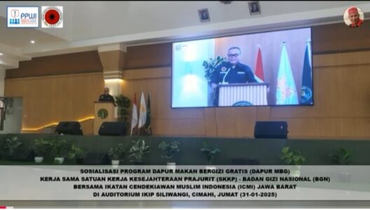 Satuan Kerja Kesejahteraan Prajurit (SKKP) melakukan kegiatan Sosialisasi Program Dapur Makan Bergizi Gratis (Dapur MBG) – Badan Gizi Nasional (BGN) bertempat di Auditorium Kampus Institut Keguruan dan Ilmu Pendidikan (IKIP) Siliwangi, Cimahi, Bandung, Jawa Barat, Jumat, 31 Januari 2025. Kegiatan itu terselenggara berkat kerjasama dengan Pengurus Organisasi Wilayah (Orwil) Ikatan Cendekiawan Muslim Indonesia (ICMI) Jawa Barat.