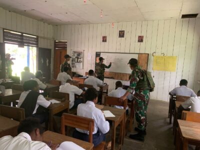 Wujudkan Generasi Cerdas : Satgas Yonif 641/Bru Bantu Menjadi Tenaga Pendidik Di Distrik Benawa