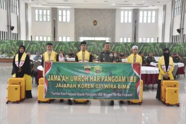 Sementara itu Korem 031/WB memberangkatkan 5 orang jamaah yang terdiri dari 1 orang PNS Makorem beserta suami dan anak, 1 orang anak dari Danramil Dim 0301/Pbr dan 1 orang anak dari Babinsa Dim 0313/Kpr.