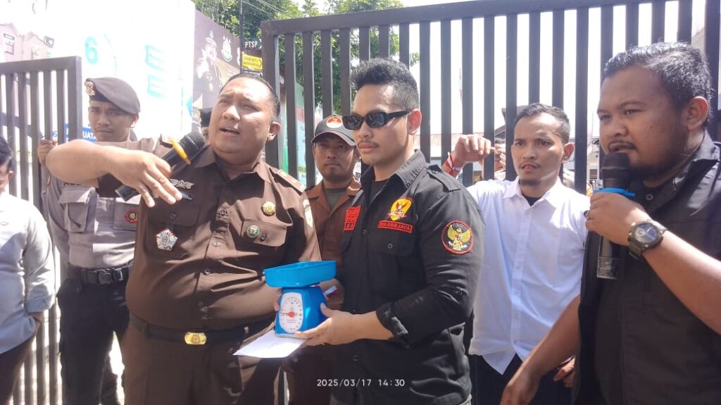 Kasi Intel Kejaksaan Negeri Rantau prapat Memet Rahmad Sugama menemui massa aksi dan menyampaikan, terimakasih terhadap massa aksi yang telah mengingatkan pihak kejaksaan, dan kesempatan itu Kejaksaan Negeri Rantau prapat mendapat bingkisan sebuah timbangan baru