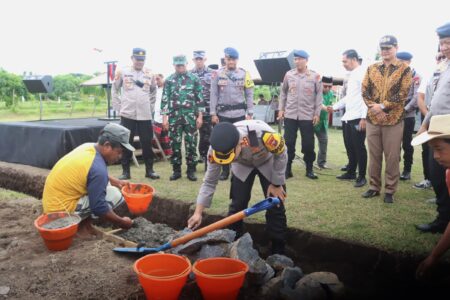 Kapolresta Banyuwangi Letakan Batu Pertama Pembangunan Gedung Aula Brimob Kompi 4 Batalyon B Pelopor Sat Brimoda Jawa Timur