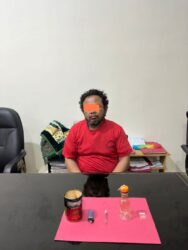 Tersangka yang diamankan adalah SH alias AD (51), warga Desa Rambah Tengah Utara, Kecamatan Rambah. Saat dilakukan penggeledahan, petugas menemukan sejumlah barang bukti berupa satu paket kecil narkotika jenis sabu yang dibungkus plastik klip bening dengan berat 0.20 gram, satu buah kaca pirek, satu set alat hisap (bong) dari botol plastik, satu buah mancis, dan satu tabung rokok merek Gudang Garam.