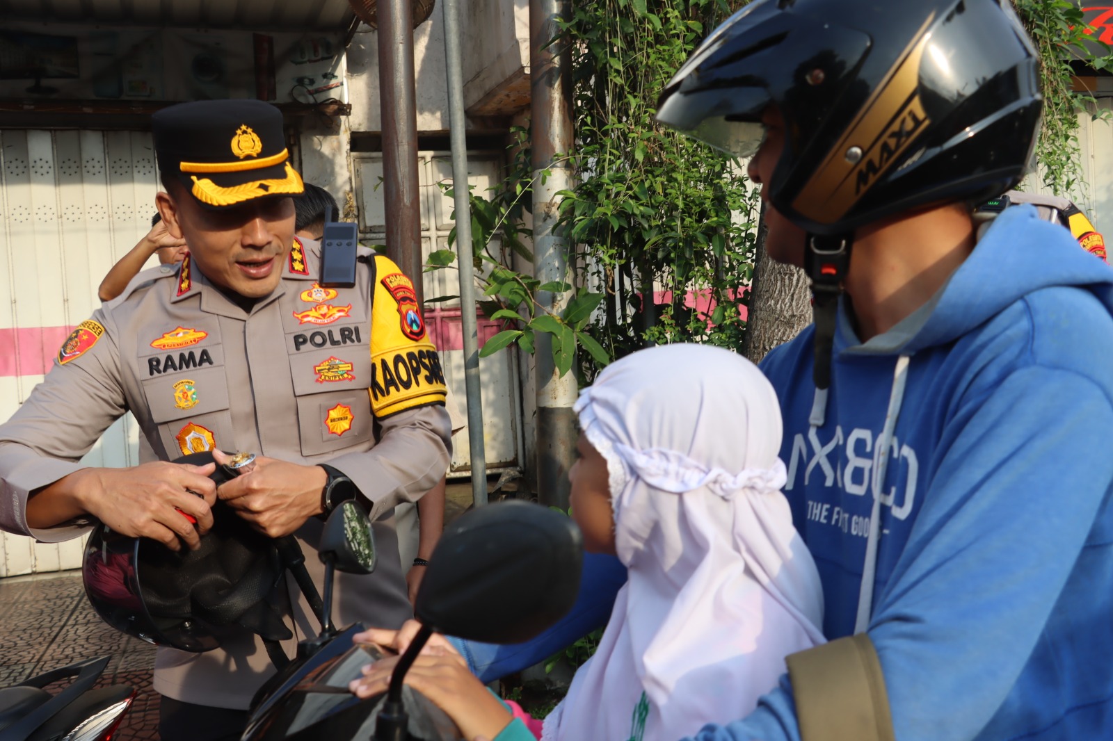 Himbauan ini dilaksanakan pada hari Sabtu,15 Maret 2025 ,yang dimana Kapolresta Banyuwangi Kombes Pol Rama turun langsung ke jalan raya untuk berikan himbauan sekaligus membagikan helm dan coklat gratis kepada para pengguna jalan khusus pengguna roda dua atau motor yang membonceng anak, rata-rata anak tidak mengenakkan helm. Selain itu imbauan secara masif juga melalui berbagai konten di platform media sosial (Medsos) seperti Facebook, Instagram, Twitter, Tiktok dan Snack video.