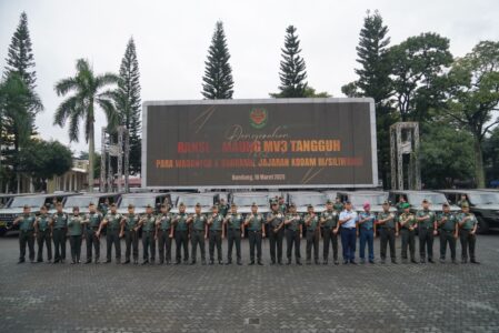 Pangdam III/Siliwangi, Mayjen TNI Dadang Arif Abdurahman, S.E., M.Si., CHRMP., menyerahkan 48 Unit Ransus 4X4 Maung MV3 Tangguh untuk mendukung operasional satuan. Kegiatan berlangsung di Lapangan Upacara Makodam III/Slw, Senin (10/03/2025).