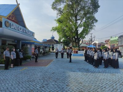 Apel pagi menjadi momentum penting bagi jajaran Lembaga Pemasyarakatan (Lapas) Kelas IIA Pekanbaru. Untuk itu, Lapas Kelas IIA Pekanbaru melaksanakan apel pagi rutin yang merupakan media bagi pimpinan untuk memberikan instruksi, apresiasi, motivasi hingga evaluasi tugas dan fungsi sebagai Petugas Pemasyarakatan dan wejangan diluar tugas dan fungsi sebagai Aparatur Sipil Negara (ASN).