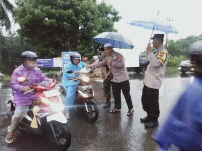 Polsek Karanglewas Polresta Banyumas Bagikan Takjil Pembuka Puasa Kepada Pengguna Jalan