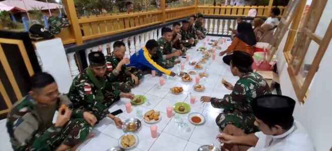 Pos Teluk Etna Satgas Yonif 642/Kps Laksanakan Pembersihan Masjid dan Buka Bersama Warga