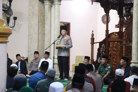 Usia sholat, Kapolda Riau, Irjen Mohammad Iqbal, dalam sambutanya menyampaikan kehadiran di Pangkalan Kerinci, kabupaten Pelalawan untuk mempererat silaturahmi dengan masyarakat sekaligus menjaga keamanan dan ketertiban selama bulan Ramadhan.