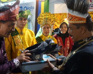 Menteri IMIPAS dan Menteri UMKM memakai Tanjak Melayu Riau buatan wbp Lapas Perempuan Pekanbaru di IPPA Fest 2025