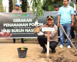 Kapolres Siak Hadiri Peringatan Hari Buruh dan Penanaman Pohon di PT. KTU Astra Koto Gasib