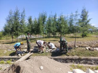 Dipimpin oleh Sertu Guntur bersama tiga anggota lainnya, kegiatan ini difokuskan pada pembangunan taman wisata lokal yang direncanakan menjadi ruang publik dan sarana rekreasi warga sekaligus potensi ekonomi desa.