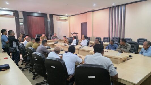 Tampak Pj Sekretaris Daerah Tengku Zulpan mengemadoi rapat dengan masyarakat Lubuk Kembang Bunga dan pihak PT. RAPP, Senin (26/5/2025) di Ruang Rapat Utama Lantai II Kantor Bupati Pelalawan.