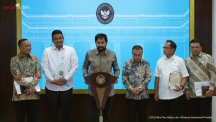 Hal itu disampaikan dalam konferensi pers Mensesneg Prasetyo Hadi di kantor Presiden, Istana Kepresidenan, Jakarta, Selasa (17/6/2025). Turut hadir Wakil Ketua DPR Sufmi Dasco Ahmad, Mendagri Tito Karnavian, Gubernur Aceh Muzakir Manaf atau Mualem dan Gubernur Sumut Bobby Nasution.