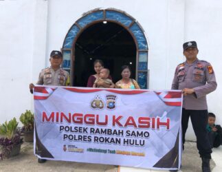 Dalam rangka memberikan rasa aman dan nyaman kepada jemaat yang sedang melaksanakan ibadah, Polsek Rambah Samo melaksanakan kegiatan patroli dan pengamanan di Gereja GPDI Maranata, Desa Teluk Aur, Kecamatan Rambah Samo, Kabupaten Rokan Hulu, pada hari Minggu (22/6/2025).