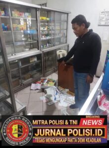 “Personel yang datang kelokasi didampingi pihak apotek dan Security, langsung mengamankan pelaku yang tertidur di salah satu ruangan. Dan kondisi apotek dalam keadaan berantakan, karena pelaku mencari laci uang.” Imbuhnya.