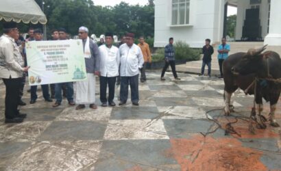 “Hari ini kami juga menyerahkan hewan Qurban dari Bapak Presiden dengan berat 800kg,”sebut Bupati