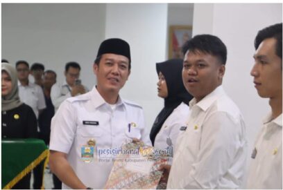 Bupati Pesisir Barat (Pesibar), Dedi Irawan, melantik secara langsung 409 Calon Pegawai Negeri Sipil (CPNS) yang berhasil lolos seleksi dan 4 CPNS lulusan Sekolah Tinggi Transportasi Darat (STTD), di Lobi Lantai 1 Gedung Marga Sai Batin, Komplek Perkantoran Pemkab Pesibar, Rabu (25/6/2025).