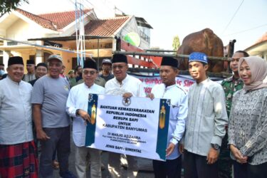 Bupati Banyumas Sadewo Tri Lastiono didampingi anggota DPRD Banyumas Rachmat Imanda menyerahkan Hewan Kurban dari Presiden Republik Indonesia Prabowo Subianto kepada Ketua Takmir Masjid Az Zahra Kelurahan Karangklesem Kecamatan Purwokerto selatan di halaman Masjid setempat Jumat 6 Juni 2025. Sapi kurban yang diserahkan diberi nama “Bawor” berjenis simental, berusia sekitar 3,5 tahun, dengan berat awal satu ton tujuh kilo gram. Sapi tersebut dibeli langsung dari peternak Kusmaryanto warga Desa Purbadana Kecamatan Kembaran dengan harga Rp93 juta dan telah melalui proses karantina serta pemeriksaan kesehatan.