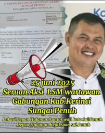 Desakan terhadap penegakan hukum atas dugaan korupsi Dana Desa di Desa Pelayang Raya, Kecamatan Sungai Bungkal, terus bergema. Setelah sebelumnya menggelar aksi jilid pertama di Kantor Inspektorat dan Kejaksaan Negeri Sungai Penuh, gabungan LSM dan aktivis kembali akan turun ke jalan untuk menggelar aksi unjuk rasa jilid dua pada Rabu, 25 Juni 2025.