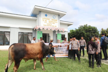 5 Juni 2025 – Dalam rangka menyambut Hari Raya Idul Adha 1446 H / 2025 M, Kapolres Batu Bara AKBP Doly Nelson Hatasi Hasian Nainggolan, S.H., M.H., menyerahkan satu ekor hewan kurban dari Kapolda Sumatera Utara kepada Yayasan Pendidikan Pondok Pesantren Jabal Hindi, yang berlokasi di Jalan Hidayah, Dusun Tuan H. Bakri, Desa Masjid Lama, Kecamatan Talawi, Kabupaten Batu Bara, Sumatera Utara.
