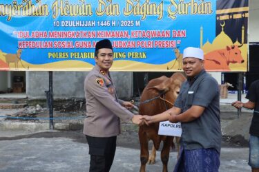 “Dalam kesempatan ini, Polres Pelabuhan Tanjung Perak turut melaksanakan penyerahan hewan dan daging kurban sebagai wujud kepedulian sosial dan semangat berbagi, khususnya kepada masyarakat yang membutuhkan di wilayah hukum kami,” ujar AKBP Wahyu Hidayat.