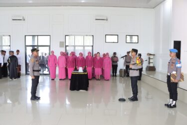 Upacara dihadiri oleh para Pejabat Utama (PJU) Polres Pesawaran, personel jajaran, serta Ketua Bhayangkari Cabang Pesawaran Ny. Siska Heri bersama pengurus Bhayangkari lainnya.