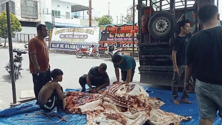 Ketua Grib Jaya Kabupaten Labuhan batu Khairil arifin menyembelih dua ekor lembu yang sehat untuk ibadah kurban pada Idul Adha tahun ini yang dilaksanakan di Kantor sekretariat DPC Grib Jaya Kabupaten Labuhan batu, dan di Lapas kelas II A Rantau prapat pada hari Jum’at 6/6/2025