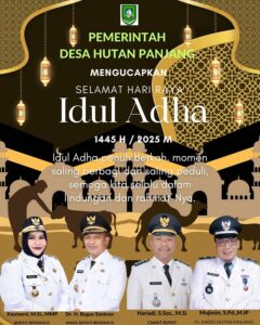 Jumat 6 Juni 2025 — Pemerintah Desa Hutan Panjang menyampaikan ucapan selamat Hari Raya Idul Adha 1446 Hijriah kepada seluruh warga desa dan umat Muslim di manapun berada.