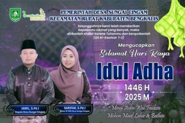Dalam semangat kebersamaan dan pengorbanan, Pemerintah Desa Sungai Cingam, Kecamatan Rupat, Kabupaten Bengkalis, menyampaikan ucapan Selamat Hari Raya Idul Adha 1446 Hijriah kepada seluruh masyarakat desa dan umat Muslim di mana pun berada.