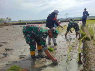 Petani Bantarsari Kompak Tanam Padi, Didukung Penuh TNI dan Penyuluh Petani Lapanga (PPL).