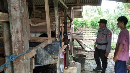 Dalam rangka mendukung program ketahanan pangan nasional pada Asta Cita Presiden Prabowo Subianto, Kanit Binmas Polsek Bangorejo, Aiptu IGB Wempi melaksanakan pengecekan dan pendampingan Program Pekarangan Pangan Bergizi (P2B) dengan metode peternakan Kambing di Desa Kebondalem, Kecamatan Bangorejo, Kabupaten Banyuwangi , Minggu (8/6/2025).