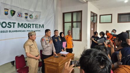Kapolresta Banyuwangi Kombes Pol. Rama Samtama Putra, S.I.K., M.Si., M.H., bersama Tim Gabungan dari DVI Pusdokkes Polri, Biddokkes Polda Jatim, Tim Identifikasi Ditreskrimmum Polda Jatim, Polresta Banyuwangi dan RSUD Blambangan melaksanakan Press Rilis Hasil Identifikasi Korban KMP Tunu Pratama Jaya, Selasa (8/07/2025).