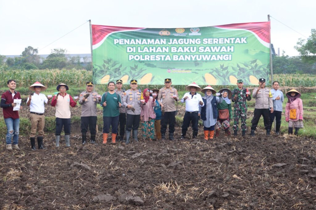 Penanaman Jagung Serentak di Lahan Baku Sawah, Polresta Banyuwangi Dukung Ketahanan Pangan Daerah