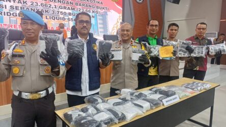 Polda Riau Gagalkan Peredaran Narkoba Internasional, Sita 23,66 Kg Sabu, Ribuan Ekstasi, dan Vape Liquid Berbahaya