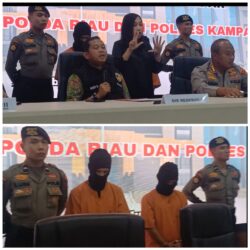 Konferensi pers tersebut diwakili oleh Direktur Reserse Kriminal Umum (Dirkrimum) Polda Riau Kombes Pol Asep Darmawan, didampingi oleh Kasubdit III Ditkrimum Polda Riau, Kabid Humas Polda Riau Kombes Pol Anom Karibianto, serta Kasat Reskrim Polres Kampar AKP Gian Wiatma Jonimandala.