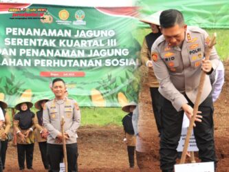 Polres Bogor menggelar Penanaman Jagung Serentak Kuartal III di lahan Perhutanan Sosial Kabupaten Bogor, Rabu (9/7/2025). Kegiatan dipimpin langsung Kapolres Bogor AKBP Rio Wahyu Anggoro guna mendukung ketahanan pangan nasional dan pemberdayaan masyarakat.