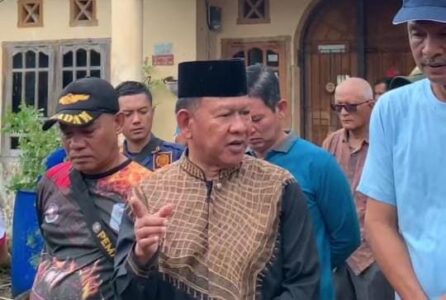 Disaat api masih berkobar ‘menjilat-jilat’ langit dibarengi hembusan asap tebal, Wabup Merangin H A Khafidh turun meninjau kondsi rumah warga yang terbakar, di RT 19 belakang Masjid Hikmah Perumahan Belakang Lapas Kelas II B Bangko, Jumat (11/7).