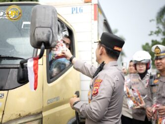 Kapolres Bogor, AKBP Wikha Ardilestanto, S.H., S.I.K., M.Si., menegaskan bahwa pembagian bendera ini merupakan simbol pengingat pentingnya menjaga semangat kemerdekaan dalam kehidupan sehari-hari.