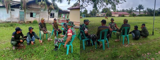 Babinsa Koramil 04/Rupat, Sersan Kepala (Srk) Hendri Palar, melaksanakan kegiatan komunikasi sosial (Komsos) bersama masyarakat di Kelurahan Pergam, Kecamatan Rupat, Kabupaten Bengkalis, pada Jumat pagi pukul 09.00 WIB hingga selesai.