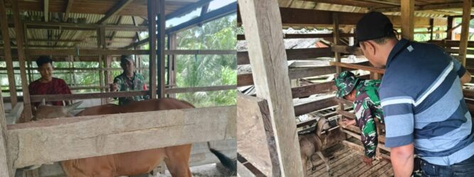 Kegiatan ini bertujuan memastikan kesehatan ternak warga sekaligus memberikan himbauan terkait langkah-langkah pencegahan PMK, seperti menjaga kebersihan kandang, memberikan pakan yang sehat, serta melakukan pemeriksaan rutin. Dalam pemantauan tersebut, Sertu Hutapea secara langsung memeriksa kondisi fisik hewan, melihat kelengkapan vaksinasi, dan berdialog dengan pemilik ternak mengenai perawatan harian.