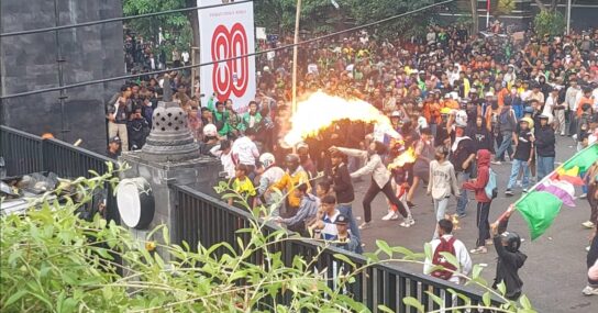 “Bahwa sore hari pihaknya telah menyiapkan pengamanan aksi unjuk rasa namun setelah kita lakukan pengamanan terhadap aksi unra ternyata bukan demo untuk menyampaikan aspirasi atau pendapat namun demo untuk melakukan anarkis terbukti saat kelompok tersebut datang berkumpul benyanyi langsung melakukan perilaku anarkis dengan melemparkan mercon dan melempar bom molotof yang mengenai Sebagian dari petugas pengamanan,” ujarnya Kabid Humas Kombes Pol Artanto dilokasi.