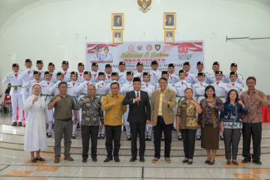 Bupati Humbahas Dr Oloan P Nababan SH MH kukuhkan Paskibraka (Pasukan Pengibar Bendera Pusaka) Kabupaten Humbang Hasundutan (Humbahas) Tahun 2025 bertempat di Pendopo Bukit Inspirasi Doloksanggul, Jumat, 15/8/2025.