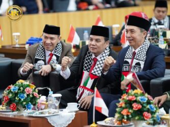 Dalam suasana khidmat, anggota DPRD dari berbagai fraksi kompak mengenakan syal Palestina sebagai wujud dukungan kemanusiaan terhadap perjuangan rakyat Palestina dalam meraih kemerdekaan.