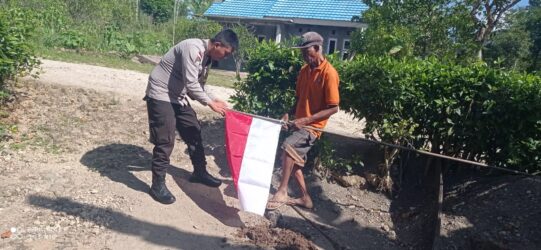 Ikut Amanat Kapolres TTS Bhabin Polsek Mollo Utara Bagi & Pasang Bendera Merah Putih Di Rumah Warga Pelosok.