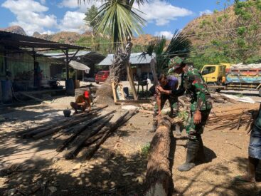 Desa Humusu Wini, 24 Agustus 2025 – Dalam rangka mempererat hubungan dengan masyarakat, tiga personel Pos Wini Satgas Pamtas RI-RDTL Sektor Barat Yonarhanud 15/DBY, dipimpin oleh Danru Serda Sumar, melaksanakan kegiatan karya bakti dengan membantu pembangunan dapur di rumah Ibu Yuren, Desa Humusu Wini, Kecamatan Insana Utara, Kabupaten TTU. (23/8).